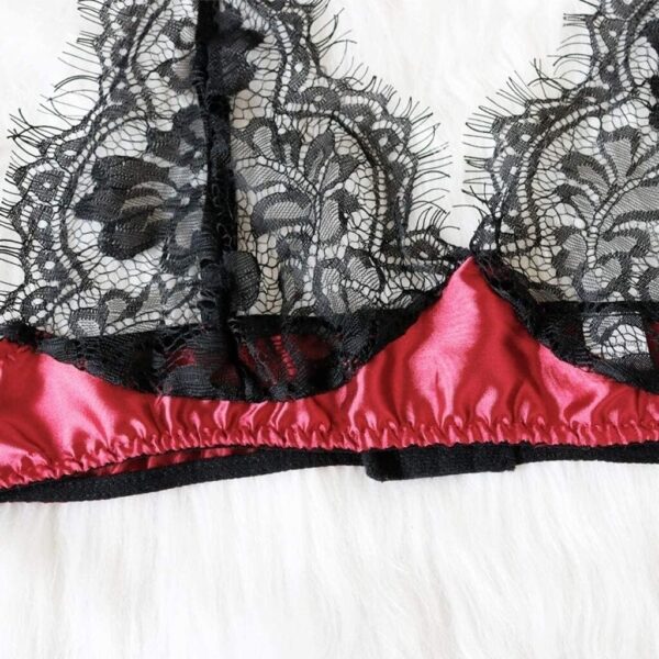 Conjunto Bralette Tul Puntilla Saten Y Tanga Suave Z402