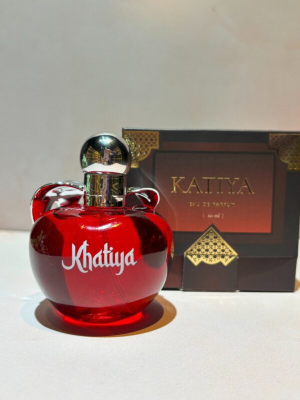 Mágico, hipnótico y encantador, KATIYA es una obra maestra creada, la fragancia emana riqueza y lujo para el usuario. es una fragancia de la familia olfativa para Mujeres. Las Notas de Salida son manzana Granny Smith y bergamota; las Notas de Corazón son maracuyá (fruta de la pasión), cedro y cilantro; las Notas de Fondo son almizcle, ámbar y pachulí.
